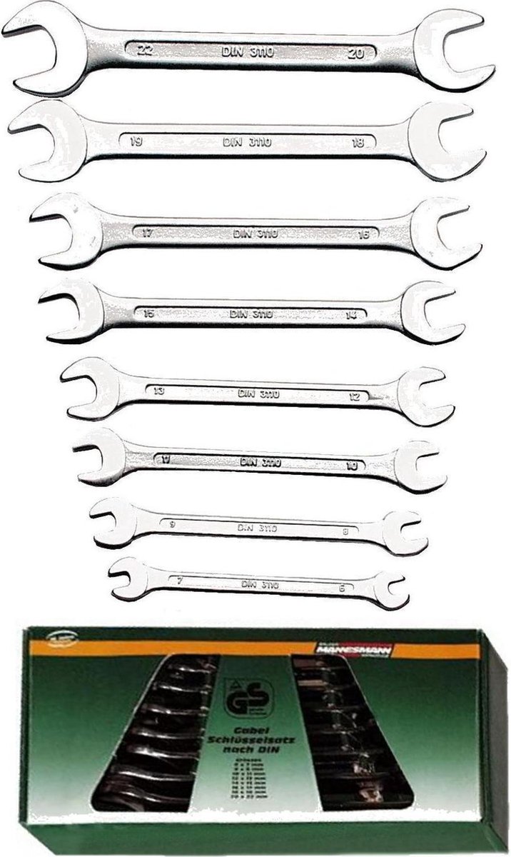 De Brüder Mannesmann M 110-08 DIN Dubbele steeksleutelset 8-delig 6 22 mm DIN 3110 maakt deel uit van de GreenLine-serie van Mannesmann. Deze industriële lijn bestaat uit kwalitatief hoogwaardige handgereedschappen die speciaal ontworpen zijn voor (semi)professionele doeleinden. De set bestaat uit acht stuks steeksleutels (6-22 mm) die de gebruiker in staat stelt om precieze aanpassingen te maken. De set is vervaardigd uit een sterke staallegering die weerbestendig en stootvast is. Bovendien is de set uitgerust met een antislip-grip die het werken in natte omgevingen makkelijker maakt. Stel je bestelling samen en wij gaan er direct mee aan de slag.